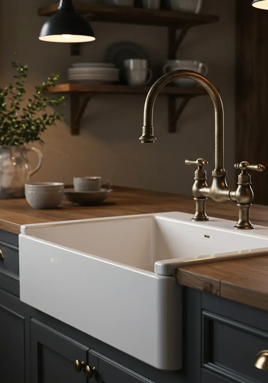 • Pair it with a bridge faucet or a vintage-style pull-down faucet in finishes like oiled bronze or polished nickel.