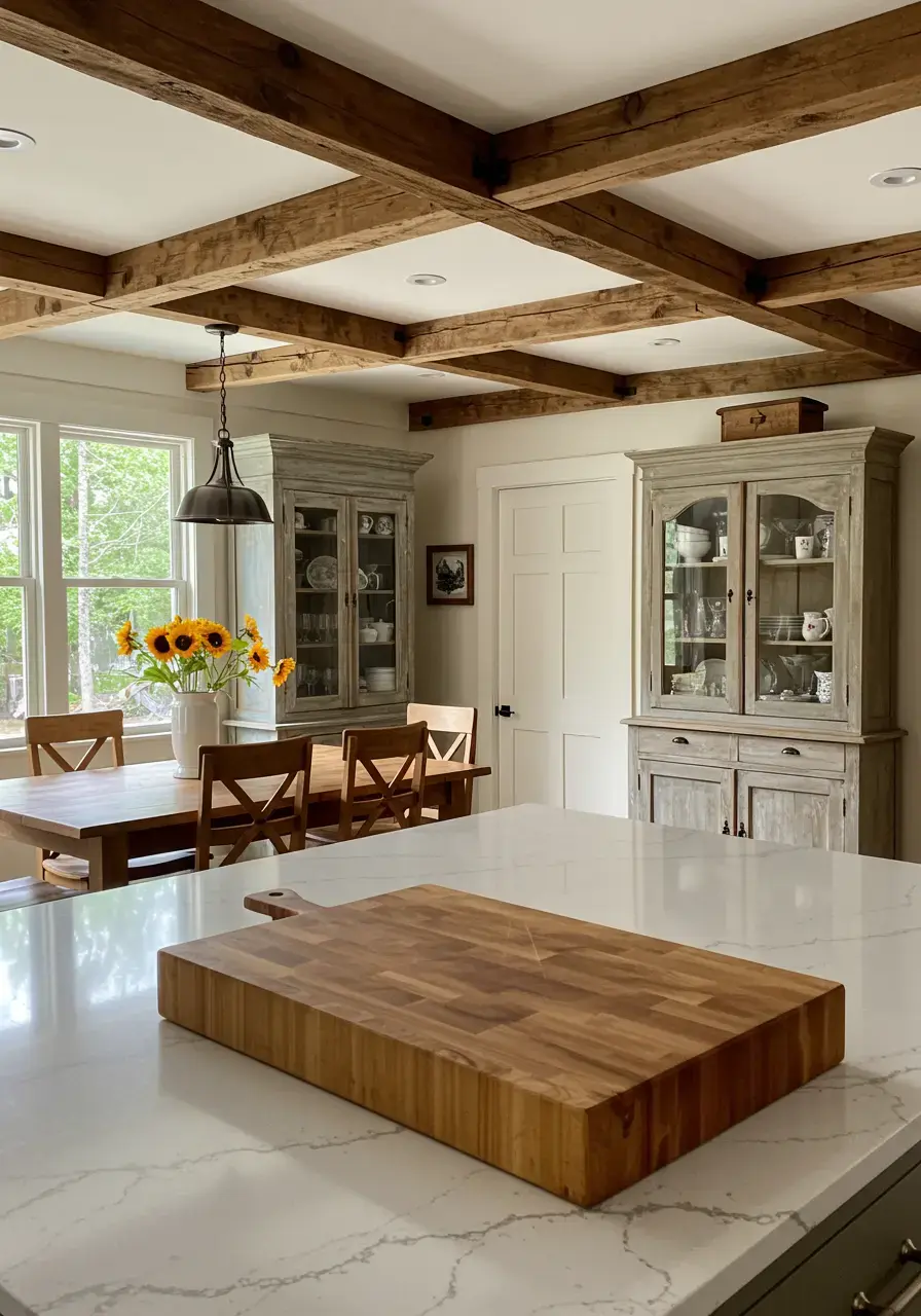 For me, nothing says ‘farmhouse’ quite like the warmth and character of natural wood. I’ve always loved incorporating found pieces into my decor, like a worn wooden stool or a chunky cutting board displayed on the counter. It adds an organic, earthy feel that makes the space feel grounded and welcoming. Think about beams, shelves, or even a statement piece of furniture.