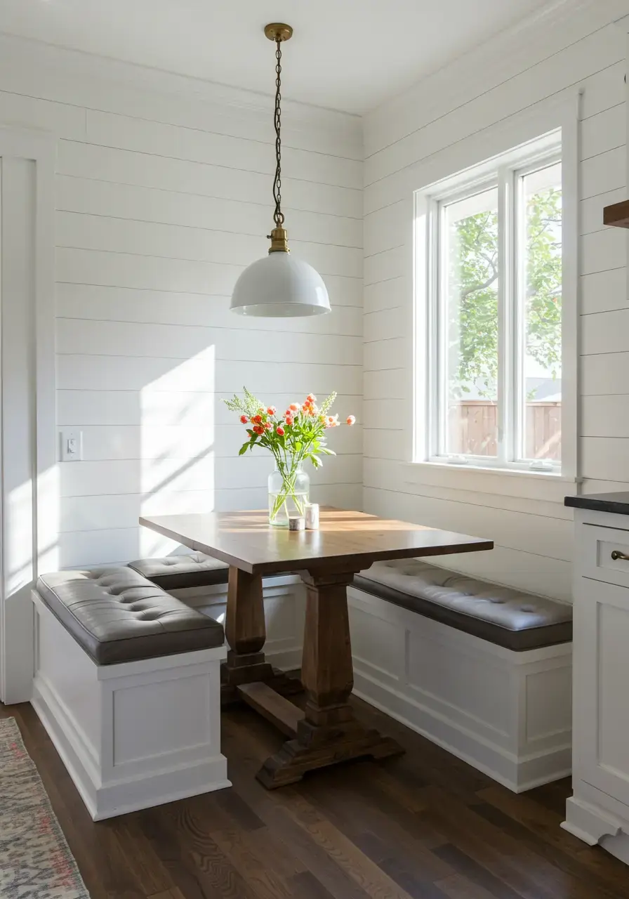 When I first saw shiplap in a farmhouse space, I was completely smitten. It’s simple, clean, and instantly adds that classic, cozy farmhouse texture. I decided to try it in my dining nook adjacent to the kitchen, and it made the whole area feel so much more inviting and complete. A shiplap accent wall can truly transform a plain wall into a feature that screams ‘farmhouse’.