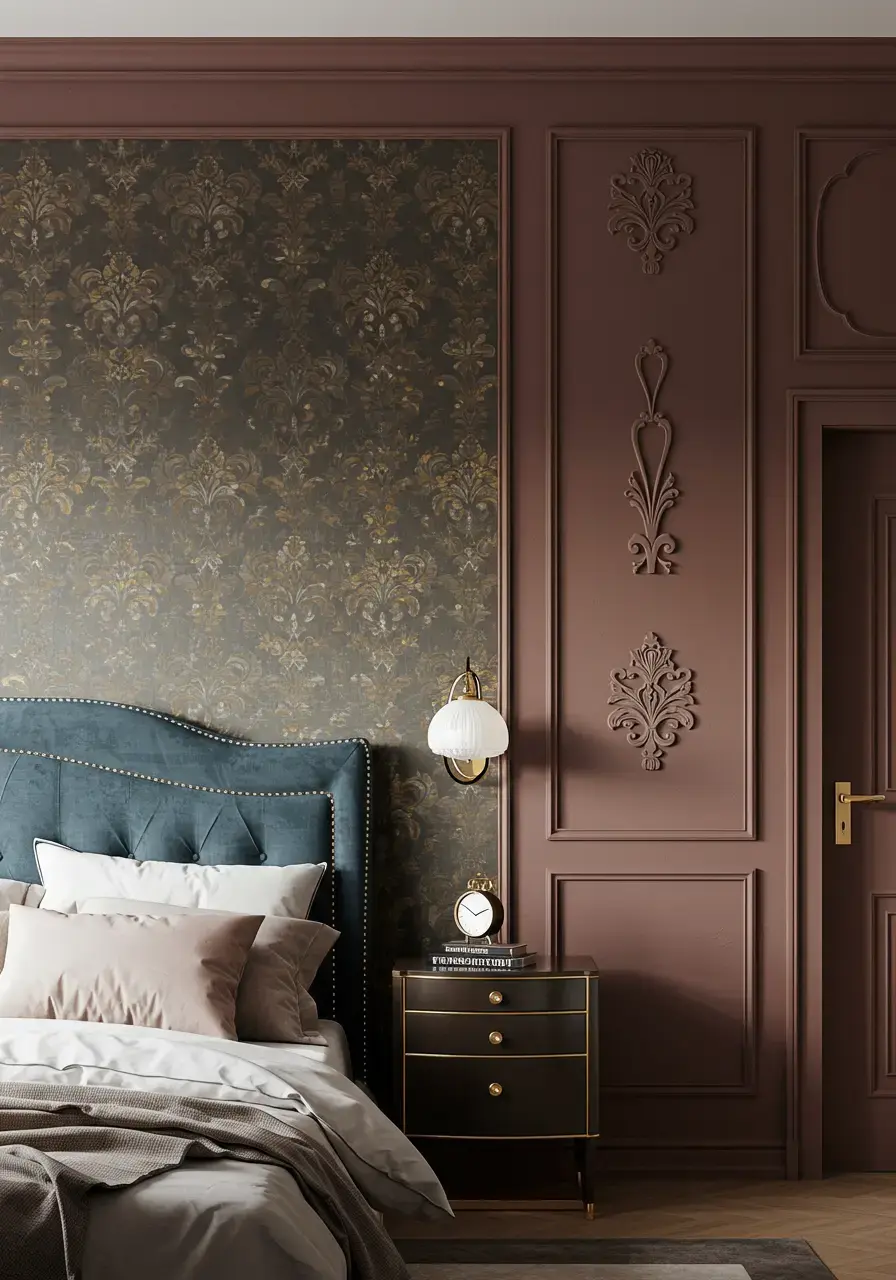 - Apply wallpaper with a subtle metallic sheen, a damask pattern, or a luxurious texture.