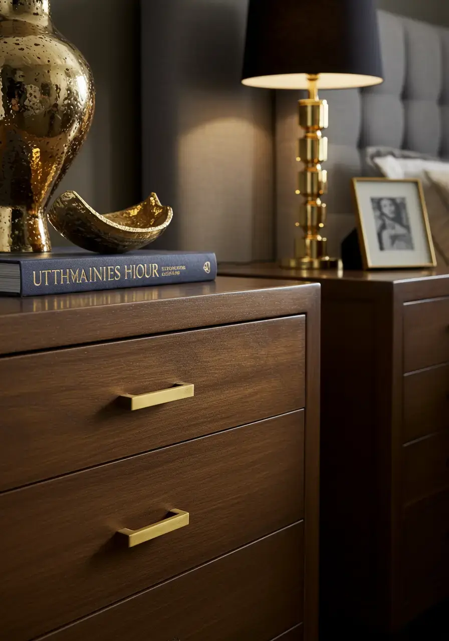 - Look for furniture pieces with subtle metallic detailing or legs.