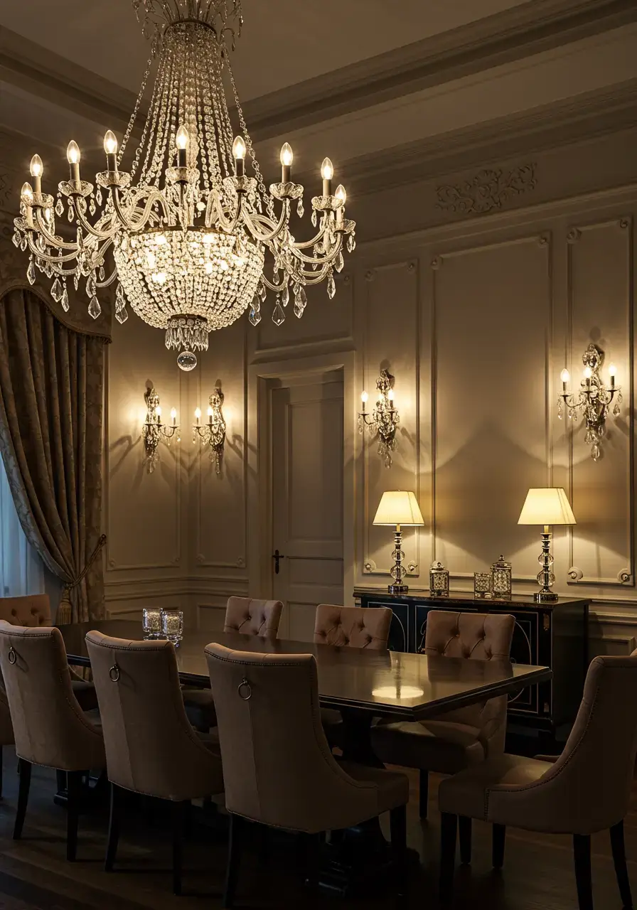 If there’s one piece that screams ‘glamour’ louder than anything else in a dining room, it’s a chandelier. It’s not just a light source; it’s a piece of art that hangs suspended, dazzling and drawing the eye upwards. I always tell my clients to invest in a chandelier that truly makes their heart sing, because it instantly elevates the entire room. It’s the crown jewel of your glam dining room.