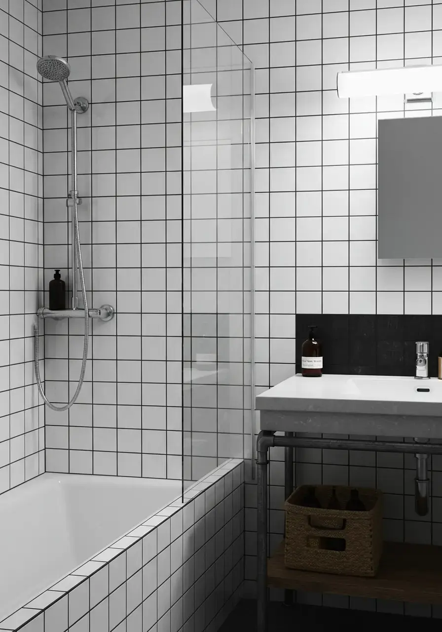 Dark grout with subway tiles creates a strong visual grid, adding definition and a grittier, more utilitarian feel that perfectly suits an industrial bathroom. It enhances the texture and pattern, providing depth.
