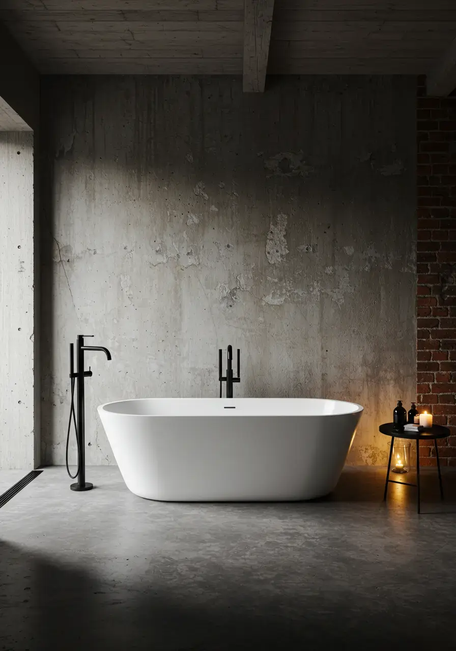 A freestanding tub creates an immediate and impressive focal point, adding a luxurious and bold statement to an industrial bathroom. It introduces a blend of sophistication and form, elevating the overall design.