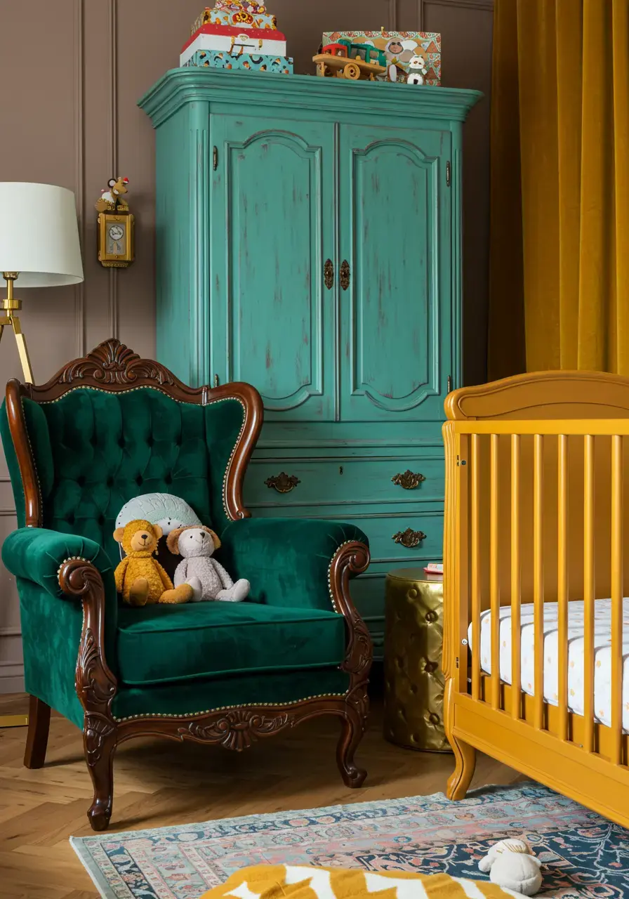 This is where you can really have some fun! My rule for maximalist furniture is: no beige allowed. I once found an antique dresser in a brilliant teal, and with a little love and new hardware, it became the star of the show in a child’s bedroom. It’s about choosing pieces that have character and feel special. Think beyond traditional nursery sets and look for unique shapes, rich textures, or unexpected colors. Every piece should feel like a discovery.