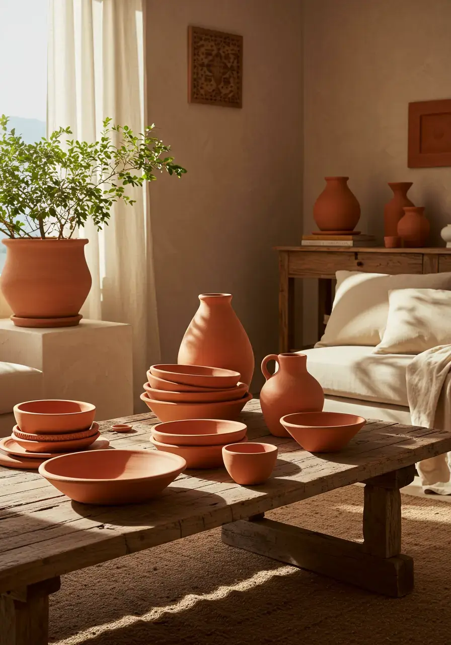 • Use terra cotta-colored decorative bowls or vases on shelves or coffee tables.