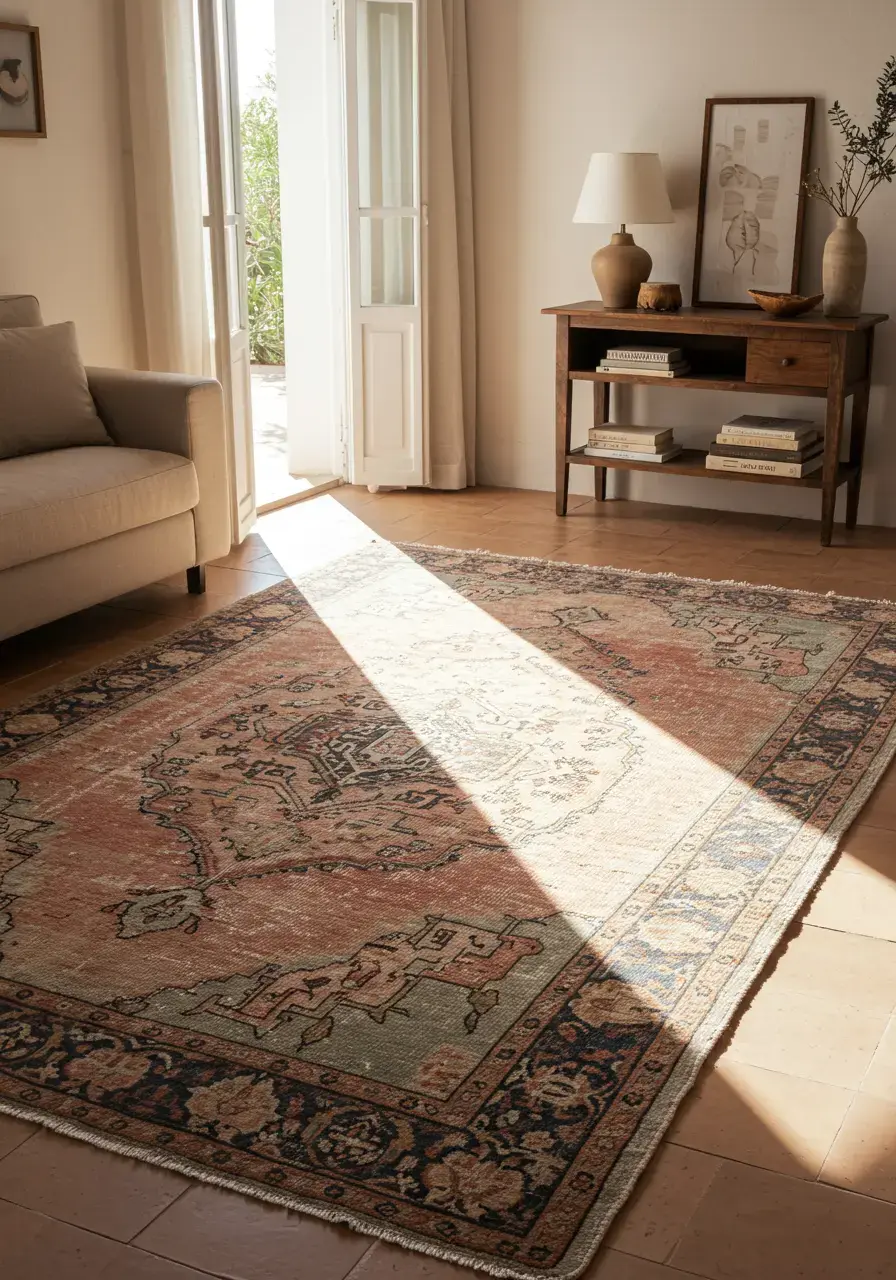 Nothing adds soul and history to a room quite like a beautiful vintage rug. In a Mediterranean living room, look for rugs with faded patterns, earthy tones, or geometric designs. They add warmth underfoot and introduce gorgeous colors and unique patterns that tell a story. It’s like adding a piece of art to your floor! A well-loved rug just feels right in this relaxed, elegant style.