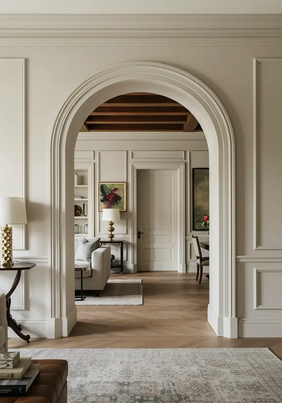 Arched doorways add unique architectural interest and a sense of timeless elegance. They create soft lines and a feeling of transition between spaces, enhancing the overall historical feel.
