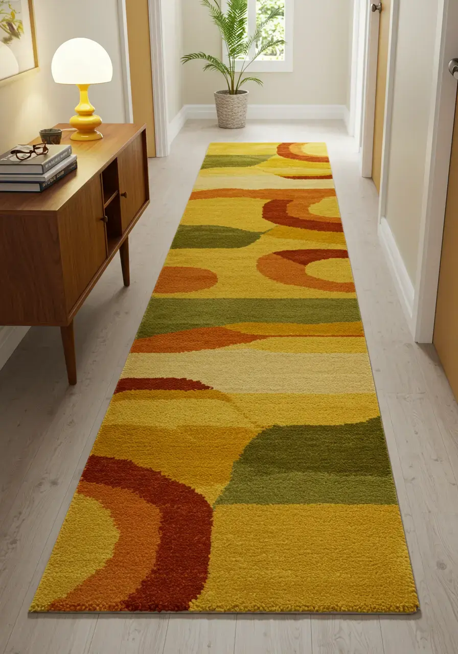 - Choose a runner rug with a bold geometric pattern, abstract curvilinear design, or a classic shag texture in earthy tones or bright pops of color.