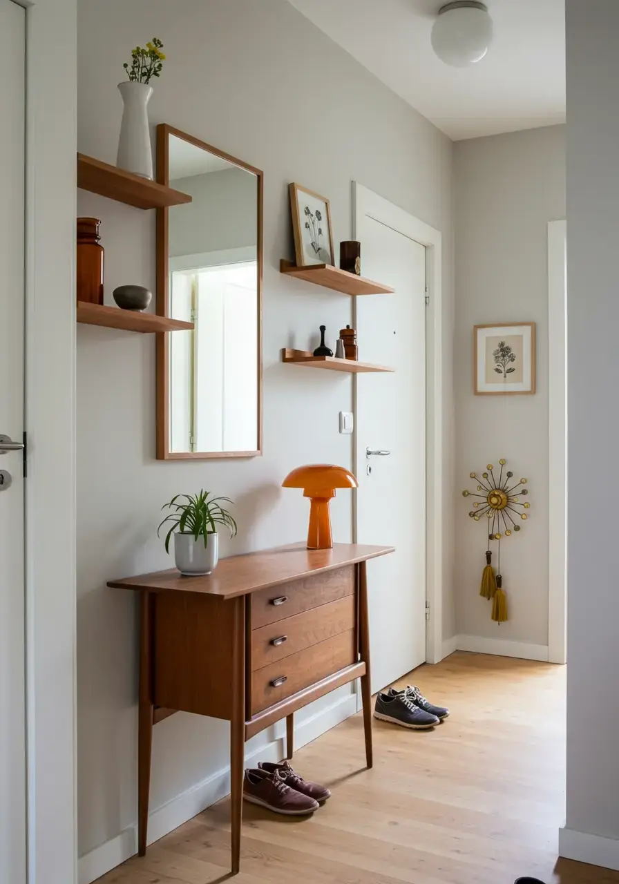 Thoughtful accessories personalize the hallway, adding layers of interest and reflecting the homeowner’s taste. They provide opportunities to introduce color, texture, and unique mid-century character, making the space feel complete and inviting.
