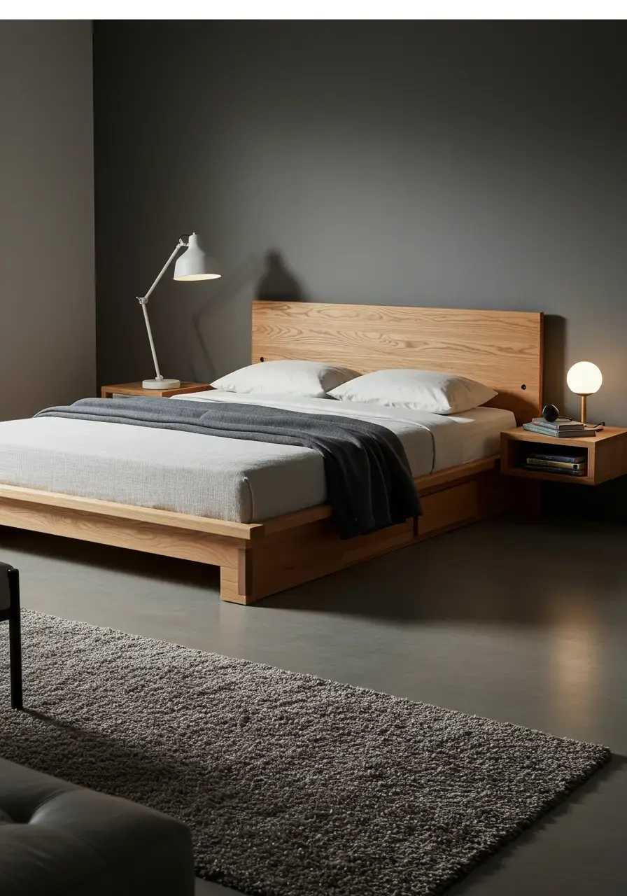 - Choose a bed frame with a simple design, perhaps with built-in storage if needed, but avoid overly ornate headboards.