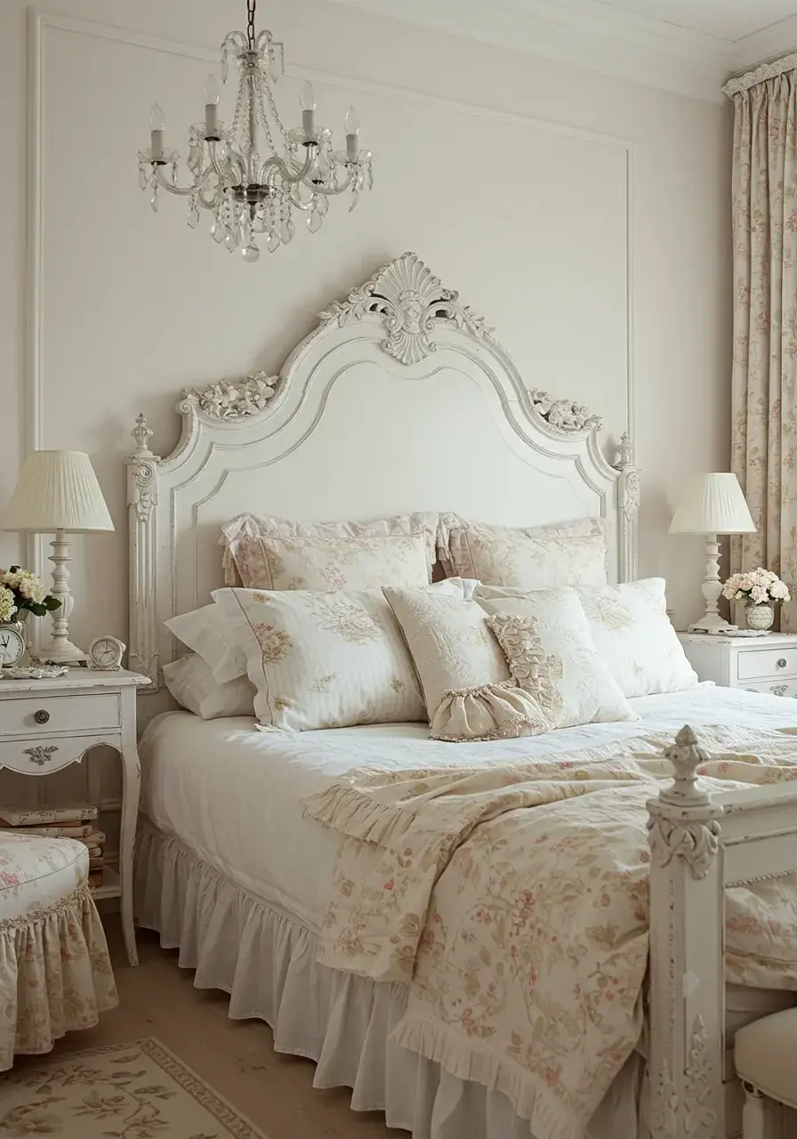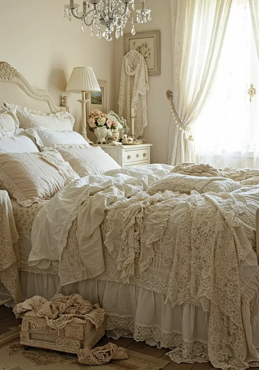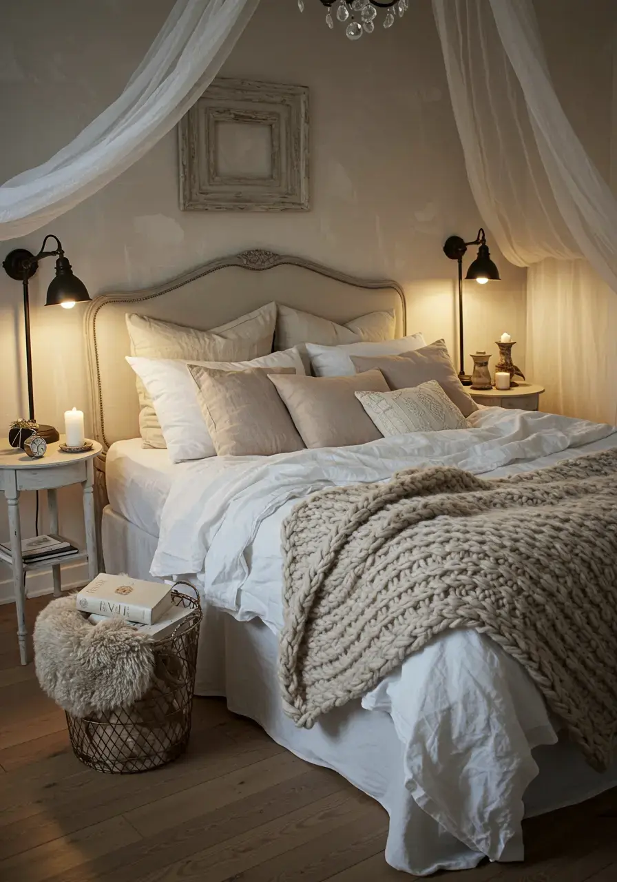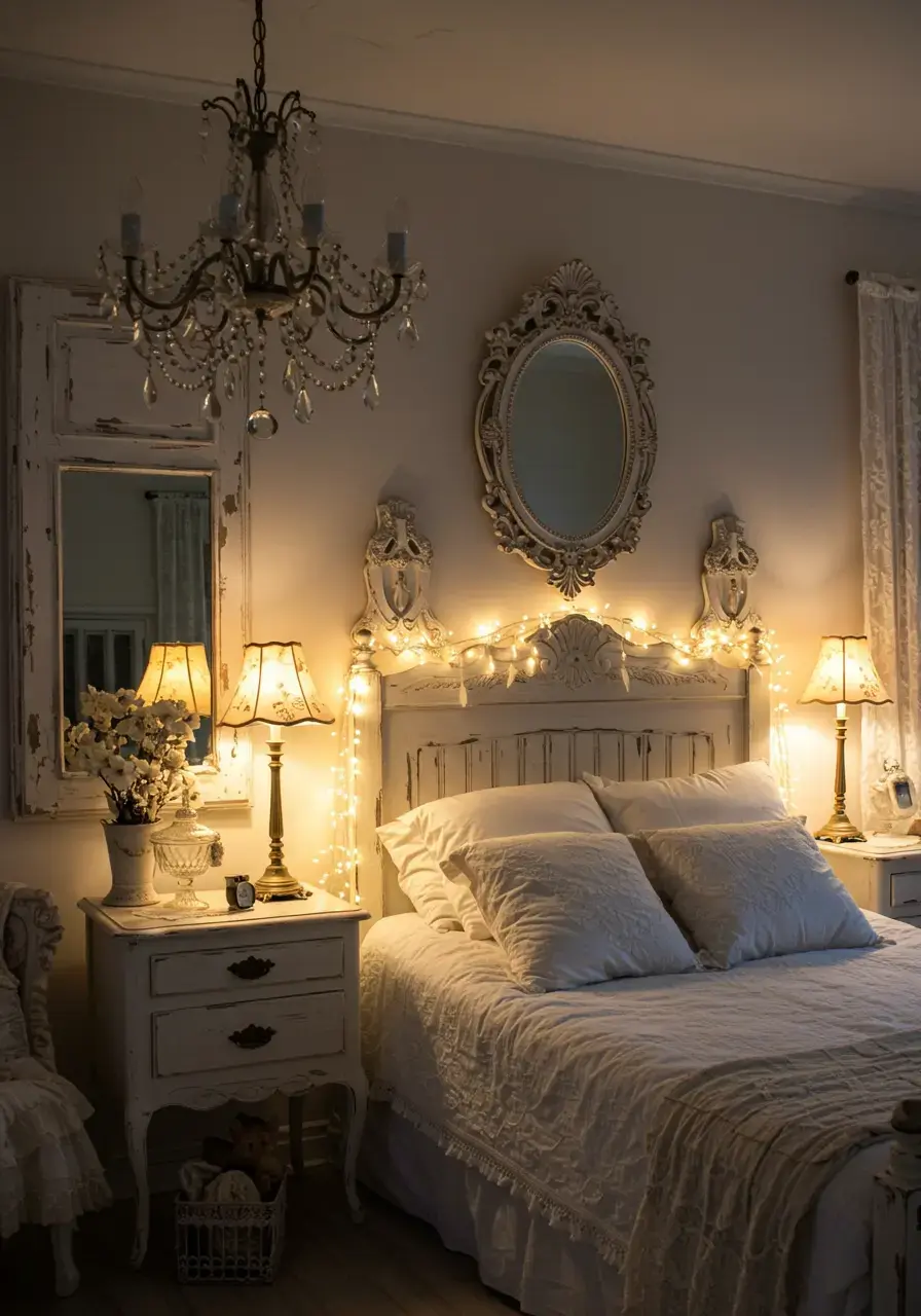 - Add bedside lamps with fabric shades that diffuse light warmly, perhaps with a floral or lace pattern.