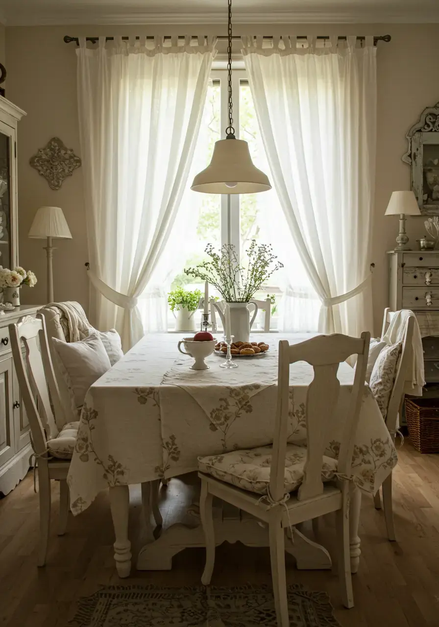 If you want to instantly add warmth, softness, and that essential cozy layering to your dining room, textiles are your best friend. I’ve found that using fabrics is like giving your room a gentle hug. They soften hard edges, absorb sound, and bring in patterns and textures that might otherwise be missing. From curtains to table linens, each piece contributes to that inviting, lived-in feel that is the hallmark of shabby chic.