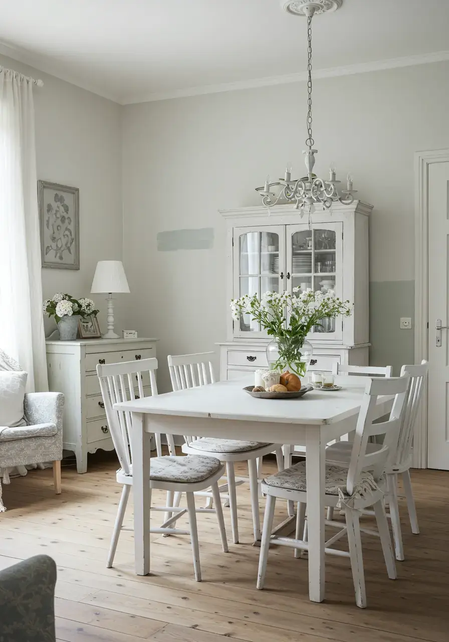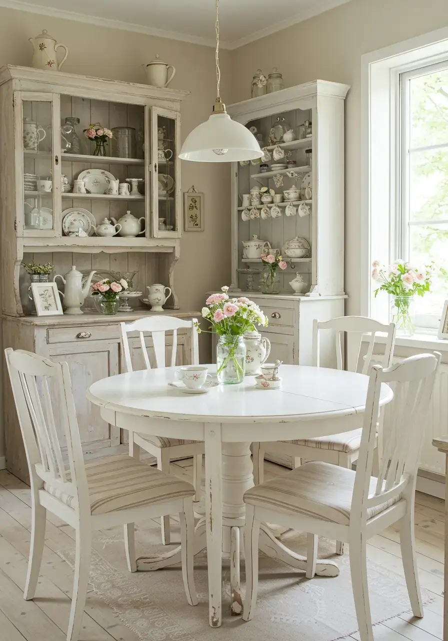 These solutions make the most of limited space, ensuring your small dining area feels open, airy, and full of shabby chic charm.