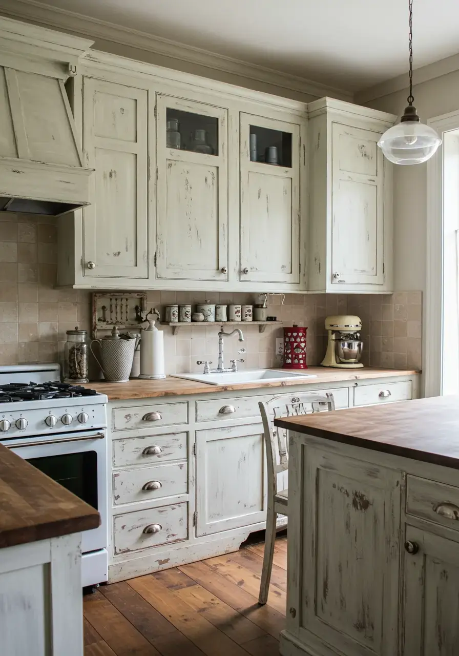 Distressed cabinetry completes your Shabby Chic Kitchen look