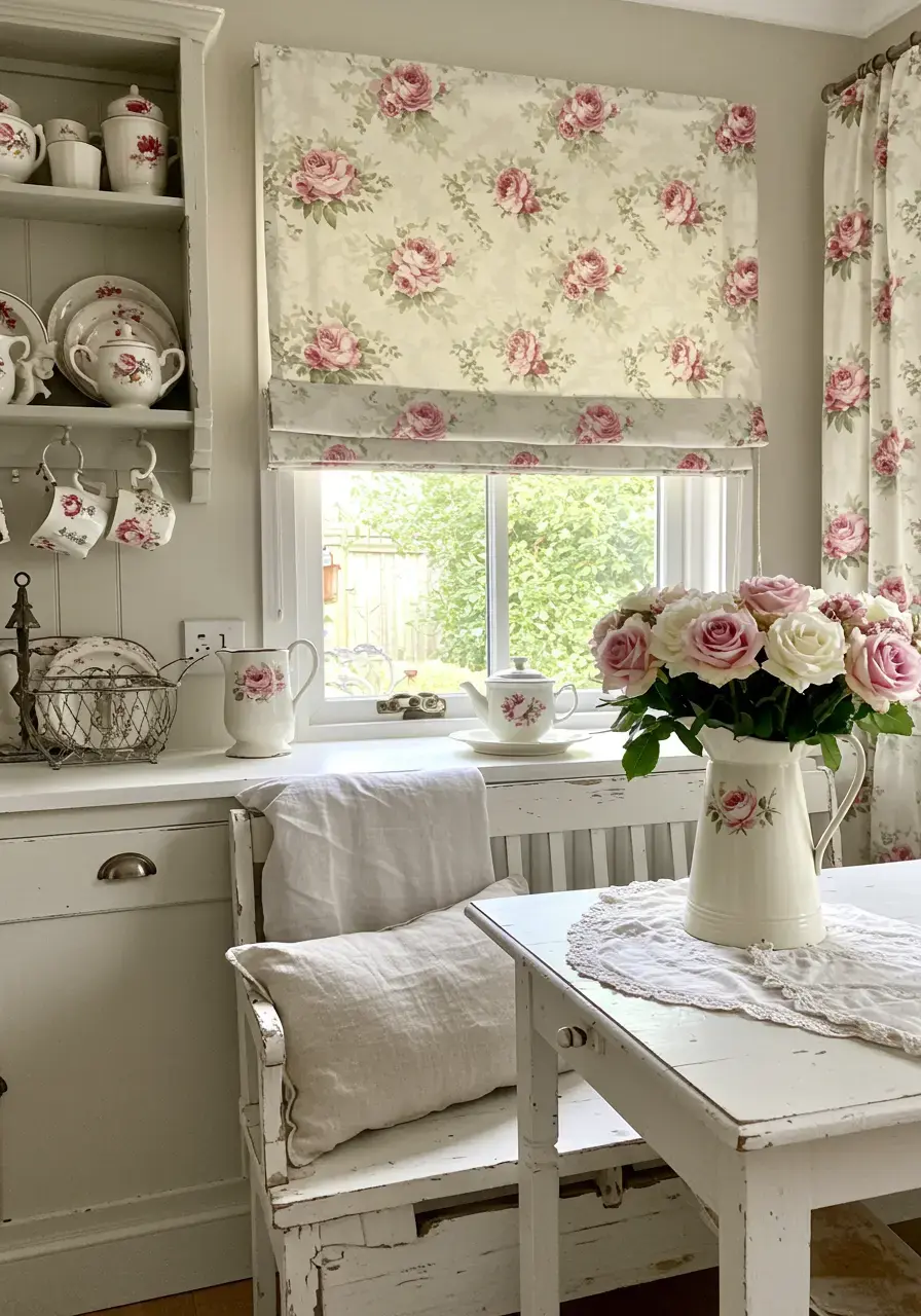 Floral patterns are a hallmark of Shabby Chic style, instantly adding femininity, romance, and a connection to nature. They soften the hard lines of a kitchen and introduce delicate beauty and charm, enhancing the overall gentle aesthetic.